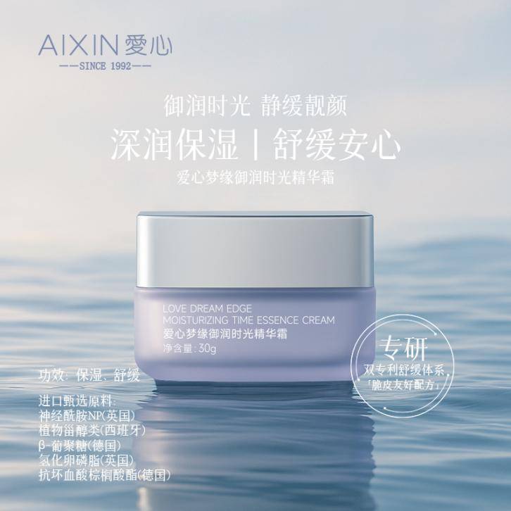 主打天然植萃修护的爱心梦缘御润时光精华霜,以天然红花精粹为核心,协同多重保湿成分,实现深层滋润与屏障强韧双重功效:既能改善干燥紧绷、补充肌肤水分,又能维稳肌肤状态、修护受损屏障,温和无刺激的配方适配各类敏感受损肤质。质地温和亲肤,为肌肤带来日常可及的贴心呵护,尤其适合干燥受损、屏障薄弱的肌肤,换季或日常维稳均可使用。