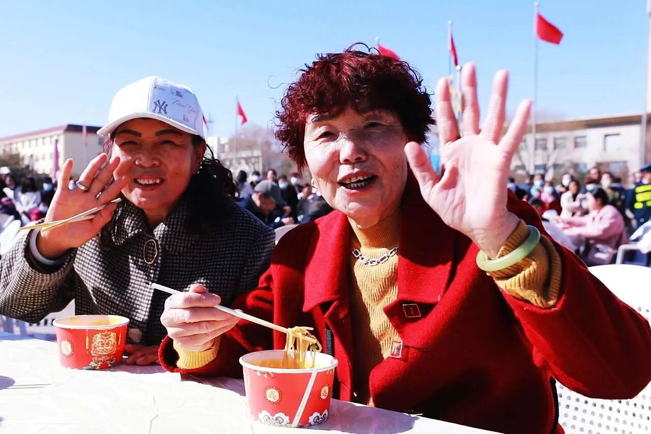 初四至初五,千年社火走进景区,锣鼓喧天、彩扇翻飞,社火表演与黄河坛的自然景观、文化场景深度相融,既唤醒人们对传统年味的情感共鸣,又以民俗活力激活景区新春氛围,实现文化传承、景区运营与游客体验的三重共赢。初五“千人饺子宴”热气腾腾,游客围坐一堂共品水饺,在鲜香中感受“多财多福”的美好寓意;初六至初七,新春长面宴暖心开席,宁夏特色长面现场制作,细长的面条承载着“长长久久、福寿绵长”的祝福,让每一位游客都能在舌尖上品味新春的吉祥。