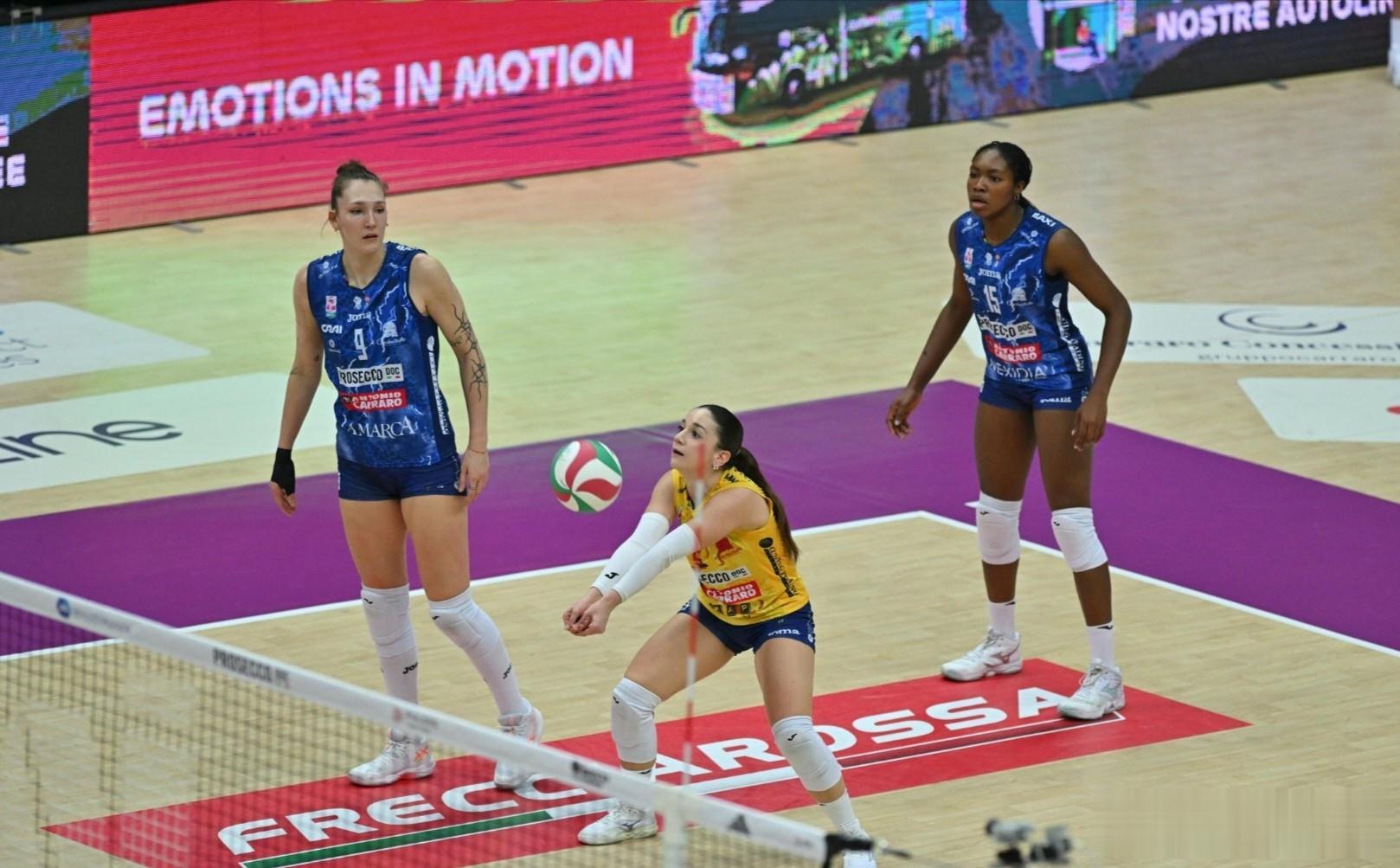 2025-2026赛季意大利女排联赛常规赛第二十五轮,斯坎迪奇3-0马切拉塔(25-15 25-20 25-17),取得第二十二场胜利。