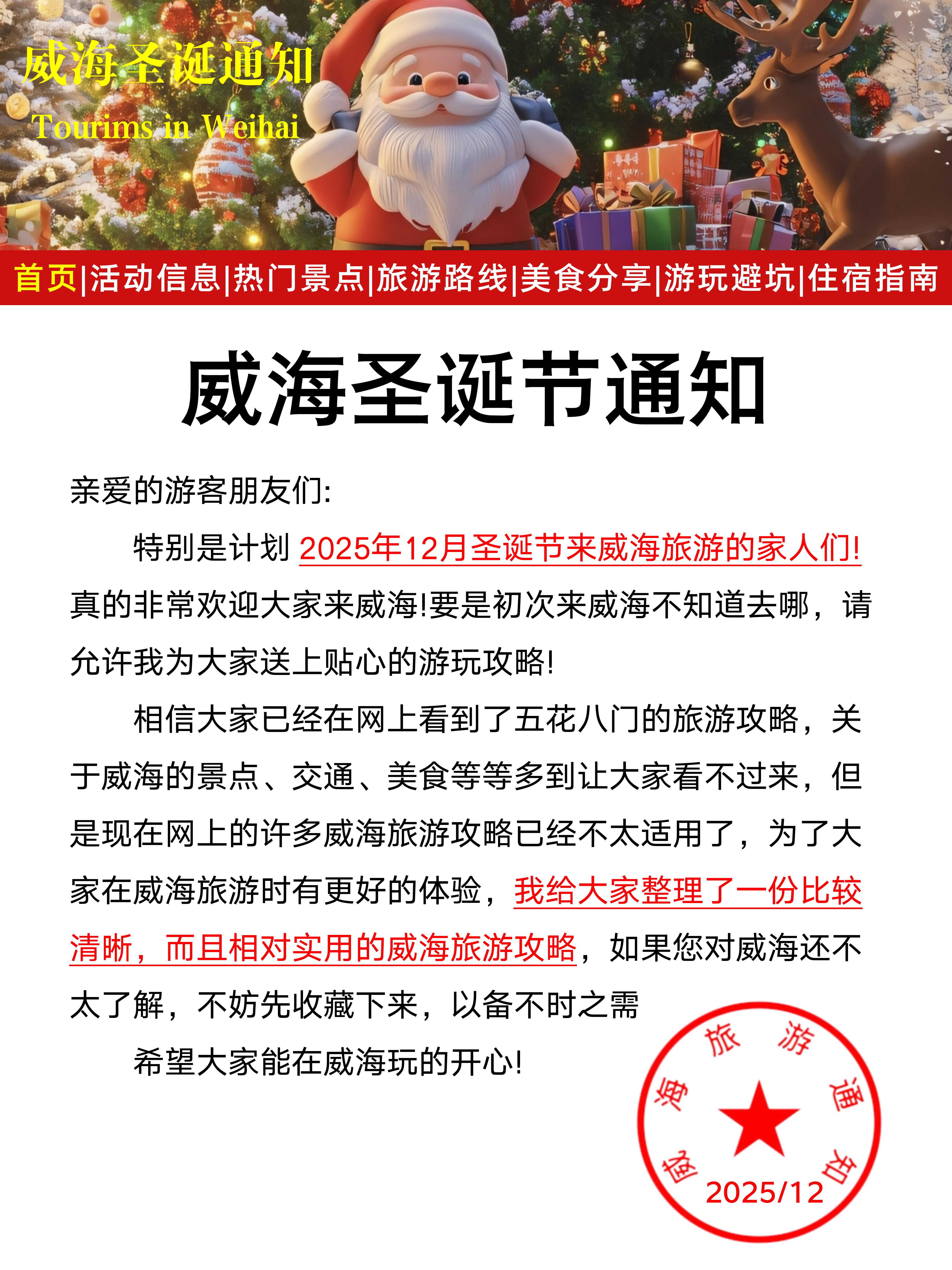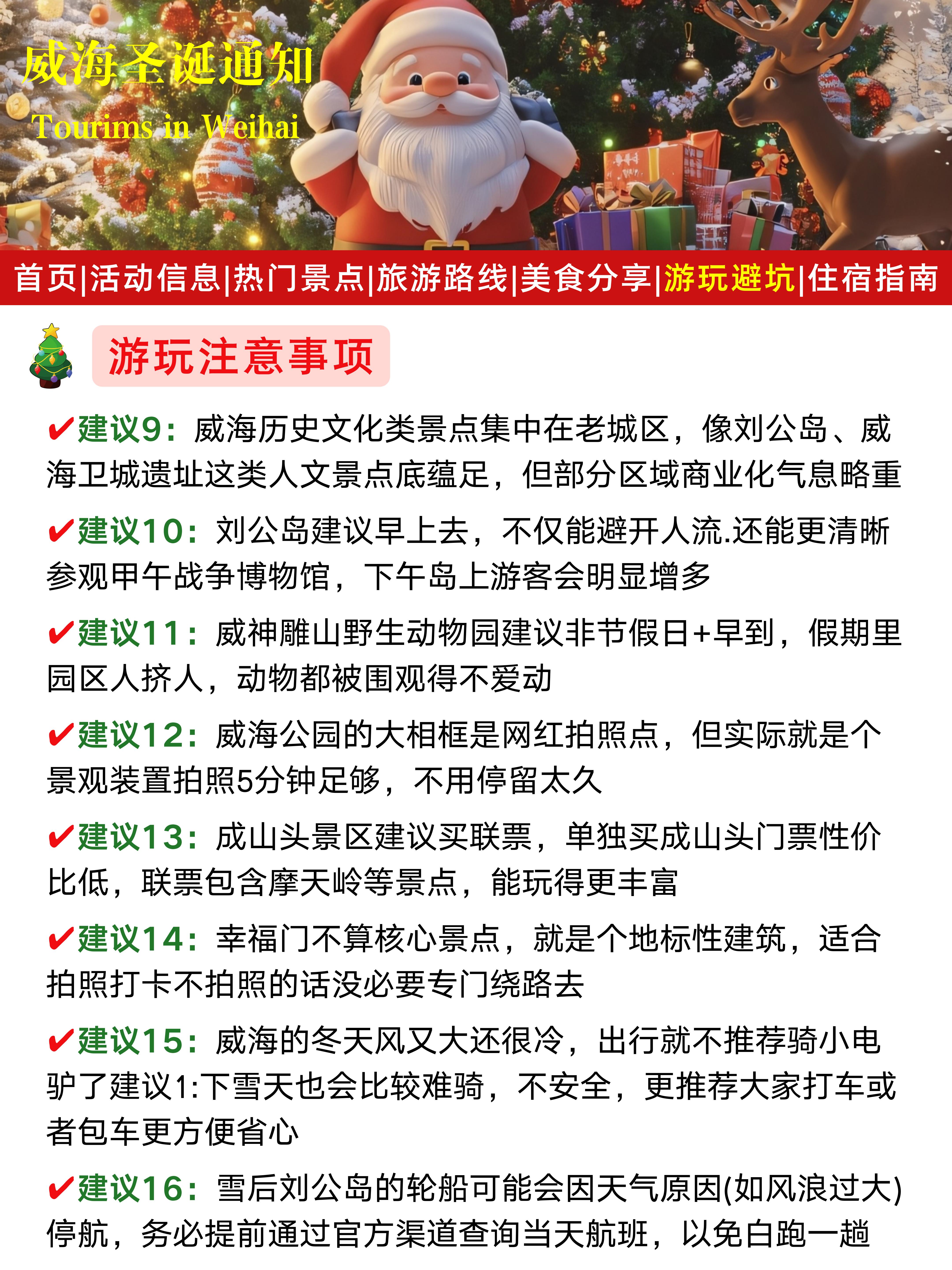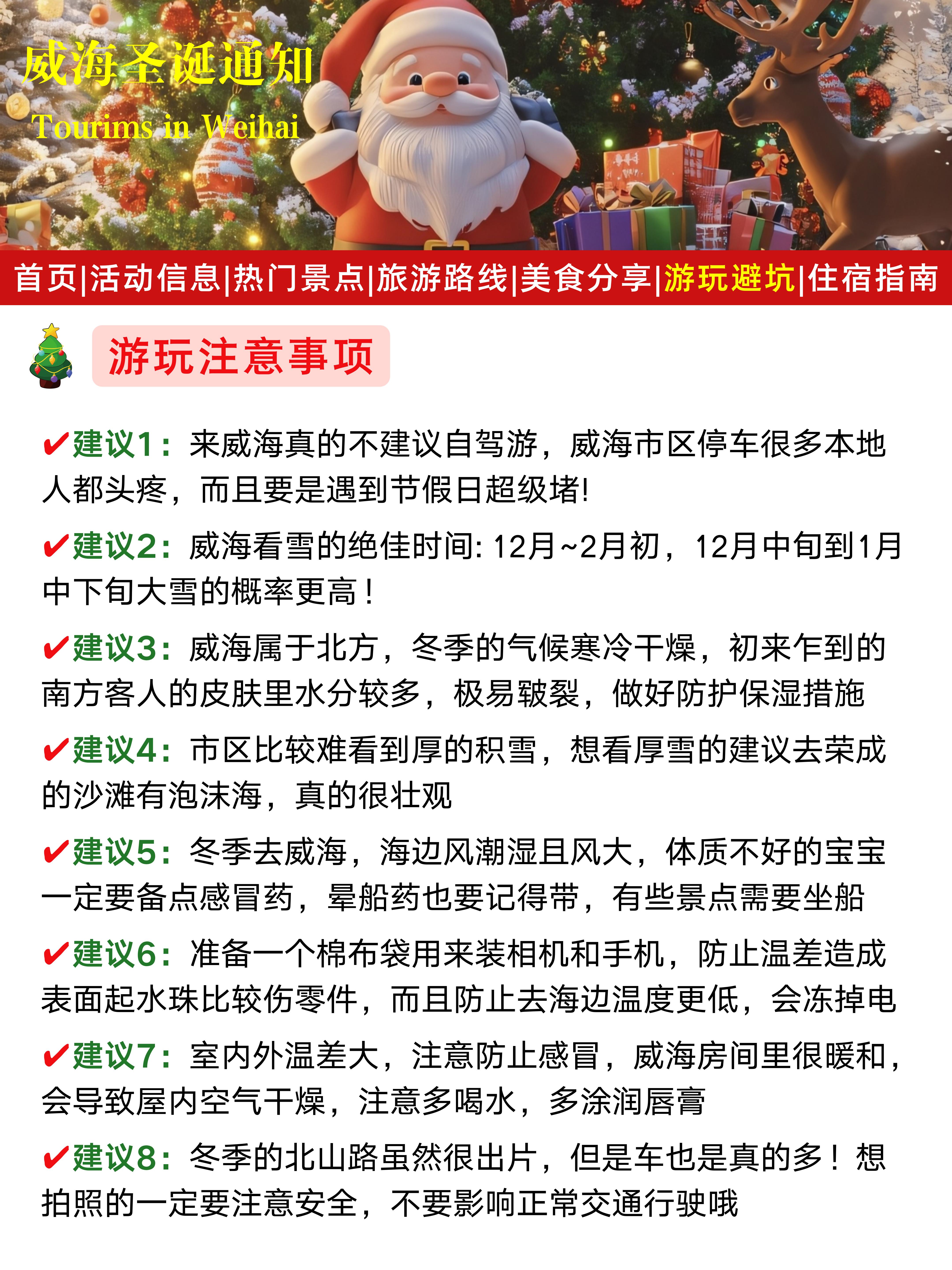 还包含威海的注意事项、🔥热门景点以及😋天气情况、住宿指南、游玩避坑、美食打卡~圣诞节准备来威海的宝子们赶紧🐎住!!!