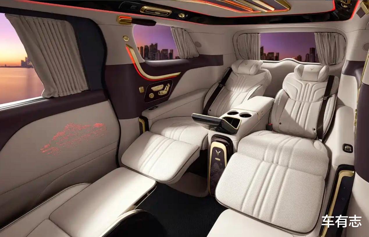 车内是岚图梦想家山河的升级重点,配备全隔断独立后舱,同时搭载50英寸IMAX巨幕,可以秒变家庭影院。后排座椅提供166°太空舱级零重力座椅,支持山河云榻舒享模式,具备加热、通风、按摩等多种功能。还有电动鞋履仓、智能风暖脚托、藏品级高定雨伞、智能双冷暖冰箱等专属配置,进一步衬托出豪华氛围。