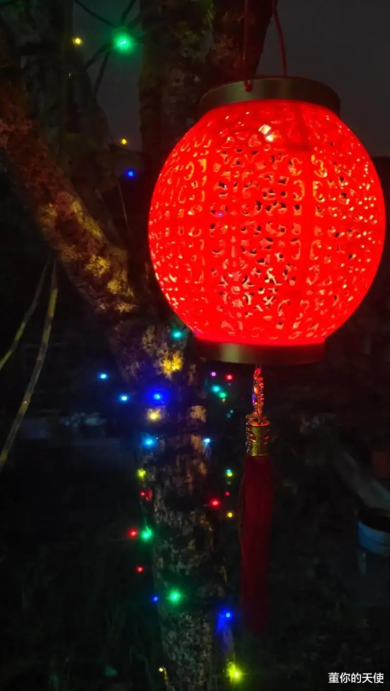 如果院子里有树,还会挂在树枝上一些灯笼,看上去喜气洋洋。当然,这些算是锦上添花,也不是谁家都这么干,像我们村,还会在家门口弄两根带叶子的竹子,说是寓意很好。