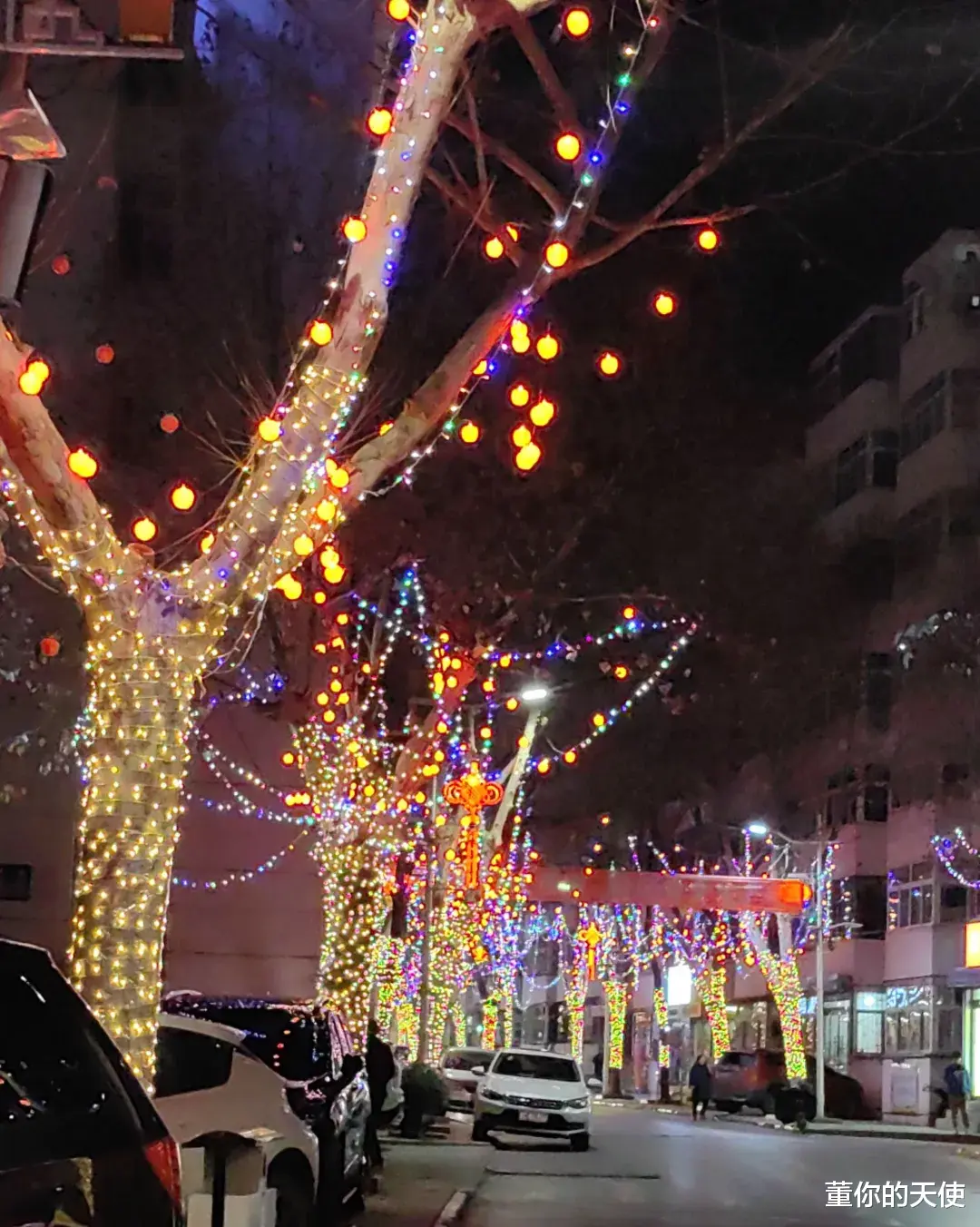 一般我见到的户外的绿化带或是树上挂上灯笼或是其他类型彩灯,觉得这种地方要么是景区要么是商业街之类的地方。
