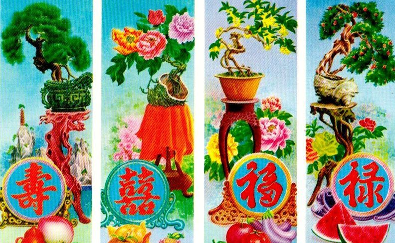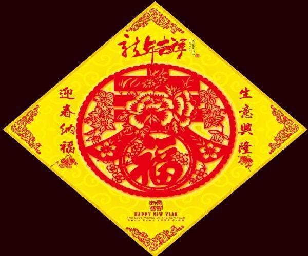 为路烘托春节的喜庆祥乐气氛,我国劳动人民千百年来创造了很多方式;其中一种就是含有祈福寓意的图案,用带有这些图案的装饰物来布置家庭、庭院,用以表达各种美好的愿望。