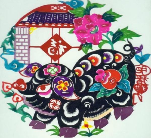 民间传说中,初三是女娲造出来猪的日子,是猪的生日。在我国北方的窗花、年画等民间艺术中,有一种“猪背上驮一聚宝盆”的图案,张贴时左右各贴一张,表示招财进宝。