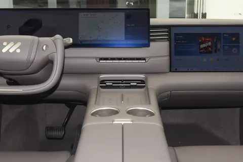 进入驾驶座,首先映入眼帘的是充满科技感与奢华氛围的内饰。正中央5K双联屏占据中控台大部分空间,分辨率极高,显示细腻逼真,色彩鲜艳真实,无论导航地图、视频播放还是听音乐,都带来极佳视觉体验。亲自操控后发现,屏幕响应迅速,界面切换和功能操作极少卡顿,布局清晰,功能分区明了,初次接触也能快速上手,无需困惑或反复试探。