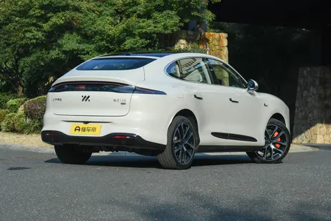 绕至车侧,流畅的溜背造型格外夺目,车顶线条自前向后顺滑延伸至车尾,宛如一滴沿玻璃自然流淌的水珠。虽为SUV,但整体造型并不笨重,反倒透露出轿跑般的灵动气息。车门采用无框设计,门把手巧妙隐藏于车身之中,解锁时才会弹出,彰显精致细节。车门下方还配有ISC智慧灯语系统,解锁时会投射动感光效,夜晚效果尤为出众。轮毂尺寸为20英寸,采用锋银运动轮辋,光泽感强烈,轮内醒目的橙色刹车卡钳极具视觉冲击力,轮毂旋转时似熊熊火焰般跳动,运动感飙升。车尾“小鸭尾”尾翼尺寸适中,配合重新设计的后包围,整体既干练又有力量感。掀背式电动尾门极具实用价值,放置或取出物品时,轻轻一键便能自动开启,方便又省力。