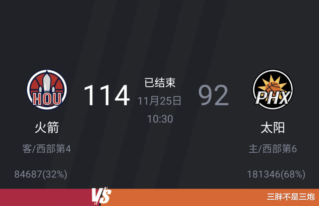 火箭:全队114分、总命中率48.9% 、三分命中率41.9%