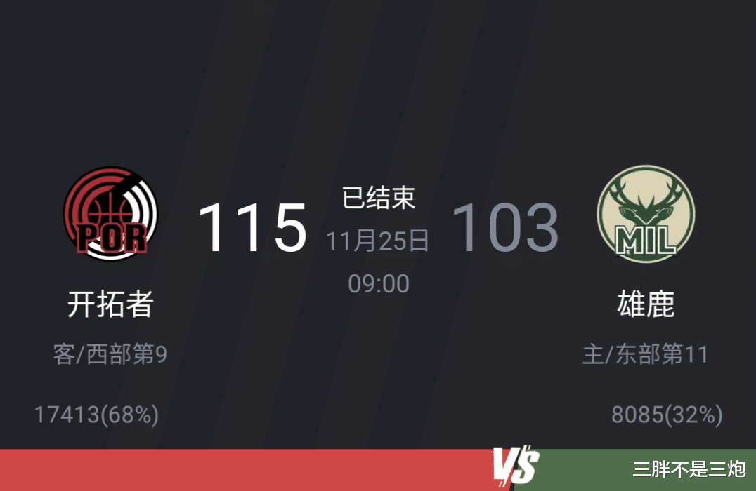 开拓者:全队115分、总命中率45.6% 、三分命中率41.9%