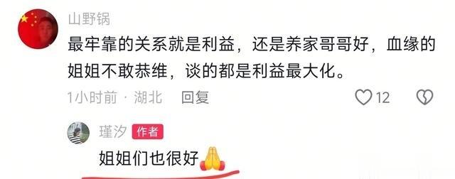 评论区热闹吗?真热闹,有人把矛头对向温州那边的爸爸妈妈和两个姐姐,话头冲,她却没跟着起,她丢出四句短话,利落收场,先说姐姐们也挺好,再说哥哥爸爸妈妈姐姐们都好,接着一句都一样好,最后一句把情绪按住,在哪都能过得幸福别再这么说,不拉踩,不挑拨,给面子,也留分寸
