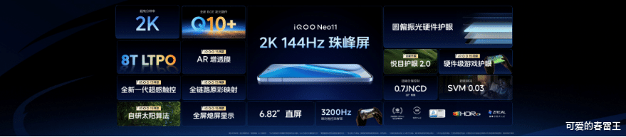 无 2K,不旗舰。凭借在清晰、色彩、亮度、触控和护眼等方面的诸多优势,2K 144Hz珠峰屏可能是最强 2K 国产屏,极致调校配双芯,助 Neo11 实现“一机制胜”。