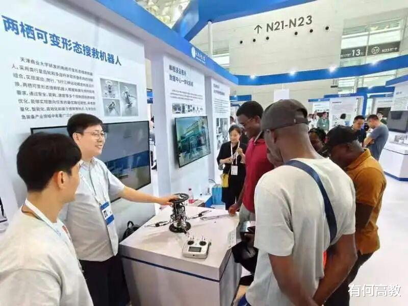 在2024年的世界智能产业博览会上,天津商业大学的两栖多模态搜救机器人亮相展览会。这一机器人在组合模式上有所创新,采用类行星齿轮和多连杆并联折叠机构的组合模式,并且还能够根据救援任务现场的实施情况反馈与要求,计算出任务的最优路径规划和最优运动模式,在滚动、爬行和飞行三种模式中自由切换,具有广阔的应用前景,获得一致好评。