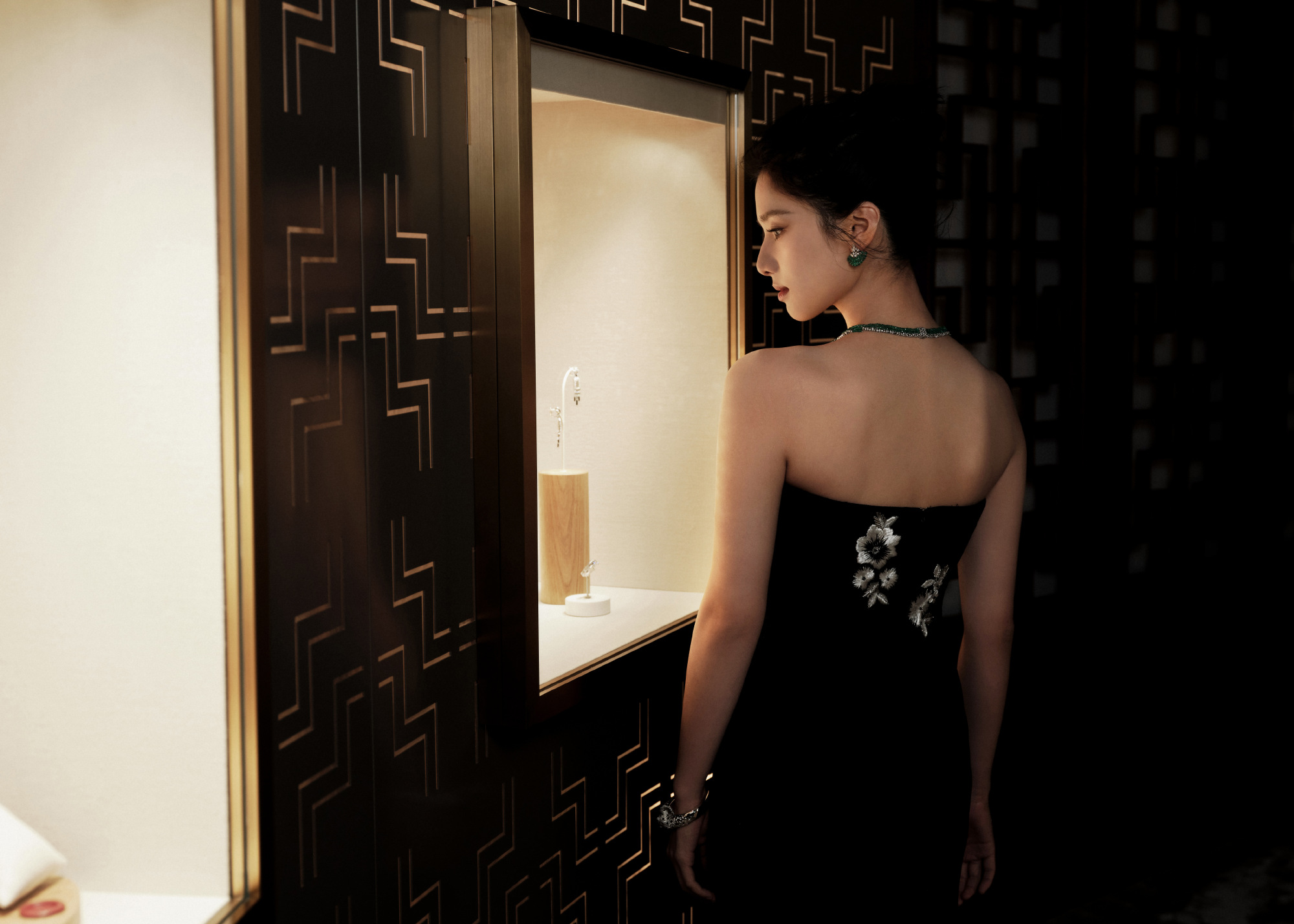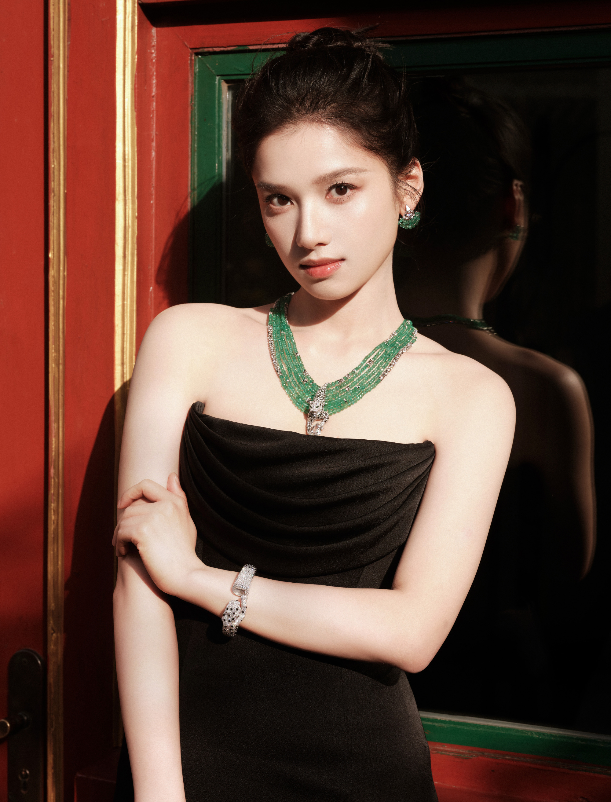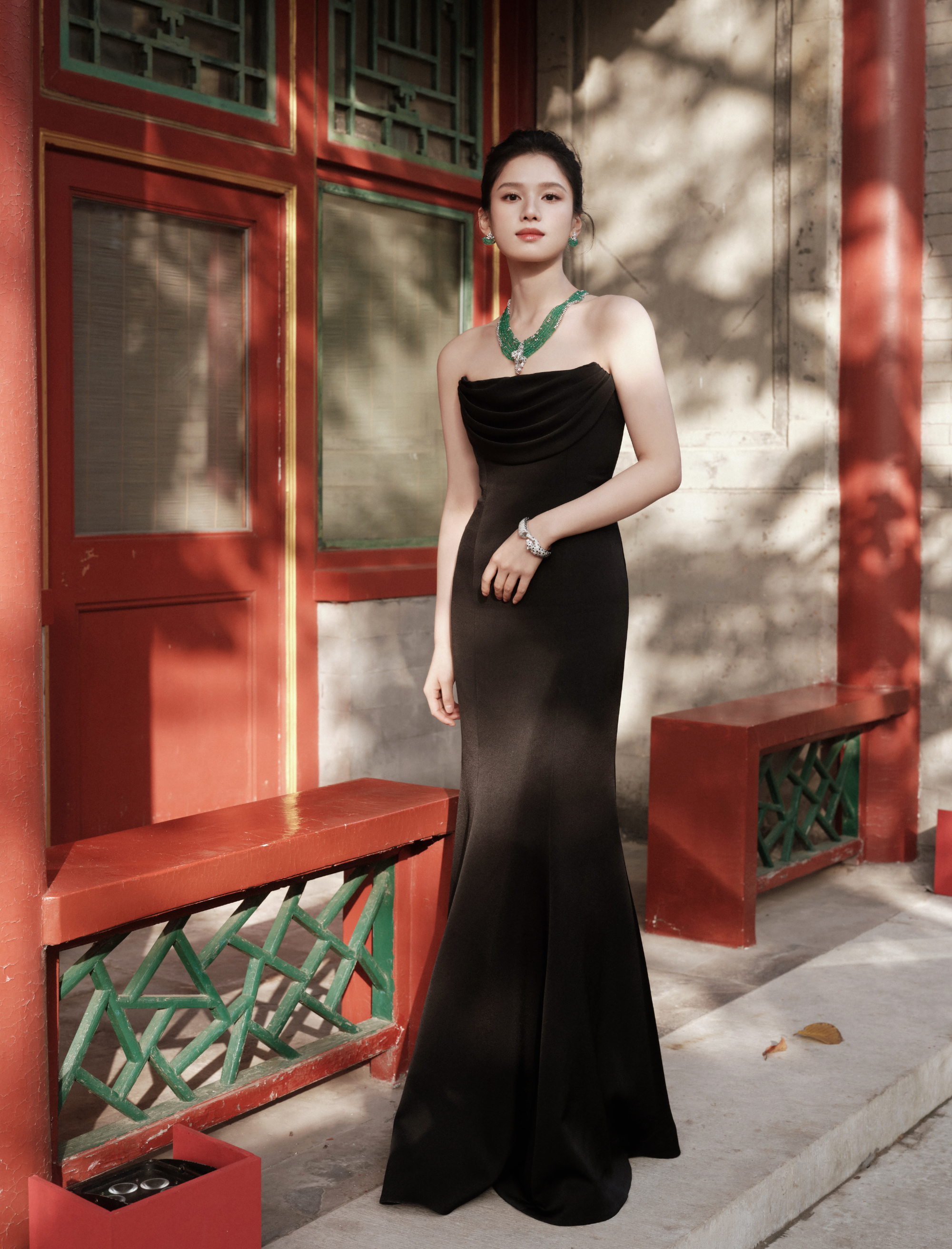 张婧仪纯黑抹胸连衣裙,高雅又迷人