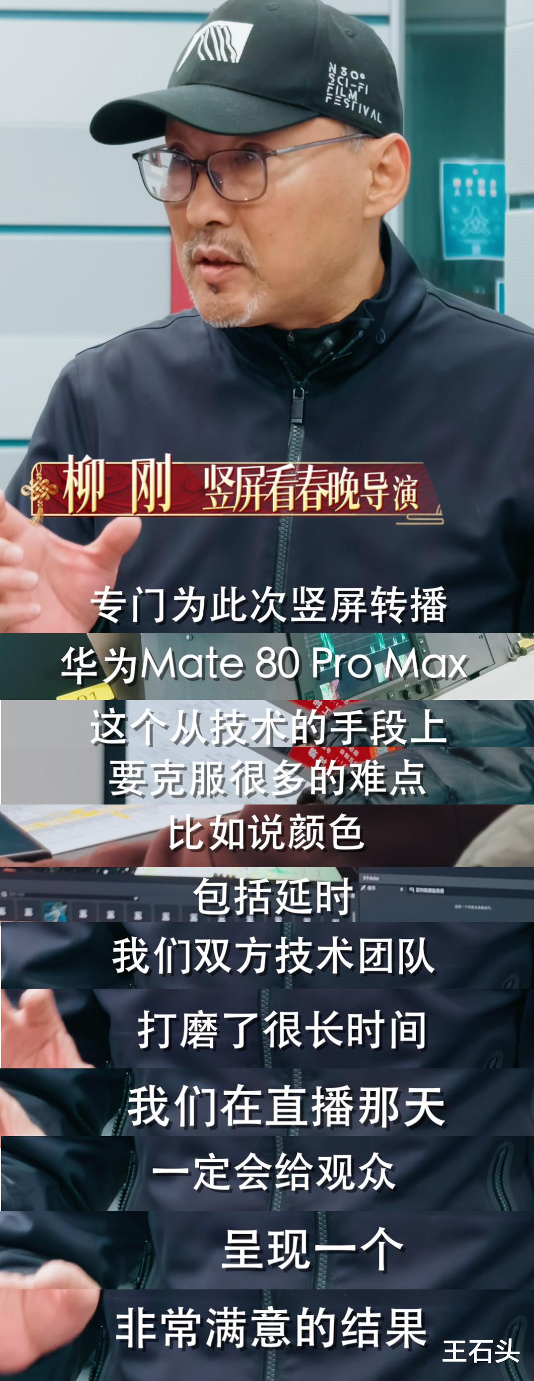 负责春晚竖屏直播的导演柳刚,在视频里详细介绍了这个“秘密武器”,这次挑大梁的具体机型,是华为Mate 80 Pro Max。