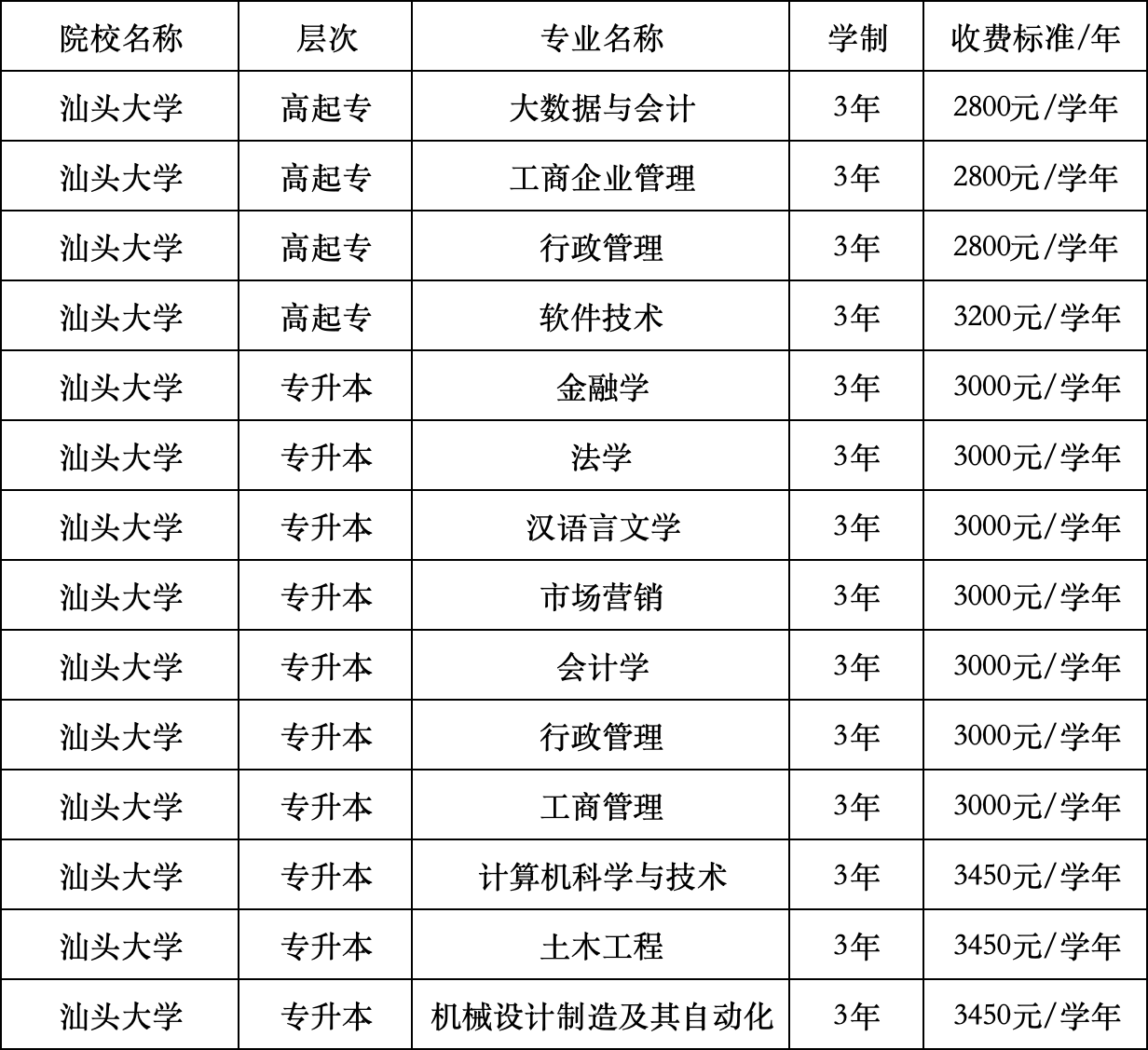 二、汕头大学继续教育学院成人教育招生专业