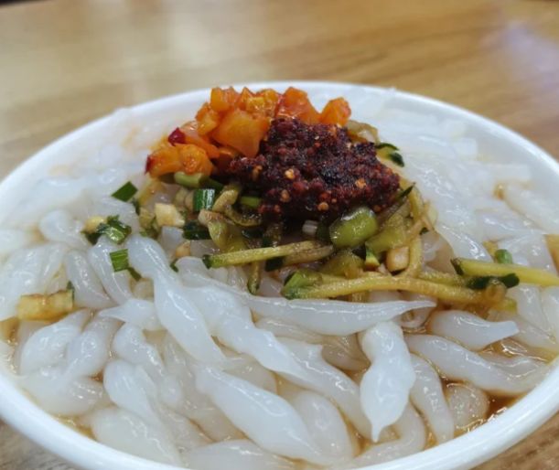 在中国许多地区的家庭餐桌上,有一道菜虽不起眼,却承载着温暖的记忆与家常的风味,这便是“蝌蚪粉”。它并非由真正的蝌蚪制成,而是因其形似蝌蚪而得名,这种用淀粉制作的爽滑面食,是寻常人家简单而充满巧思的吃食。