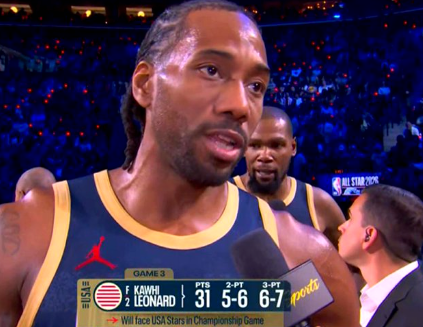 2.伦纳德:主场作战,第二场狂砍31分,最后时刻迎着唐斯防守投中致胜三分球,简直就是战神一般的存在,但是无奈赛制需要连战三场,决赛体能下滑,罚球也出现问题,无法支撑高强度作战,无论如何小卡已经展现的自己的态度,而且难得露出笑容,面对昔日猛龙老队友西亚卡姆和鲍威尔,小卡是一点也不手软,让人不禁回想起2019年带领猛龙夺冠的场景。