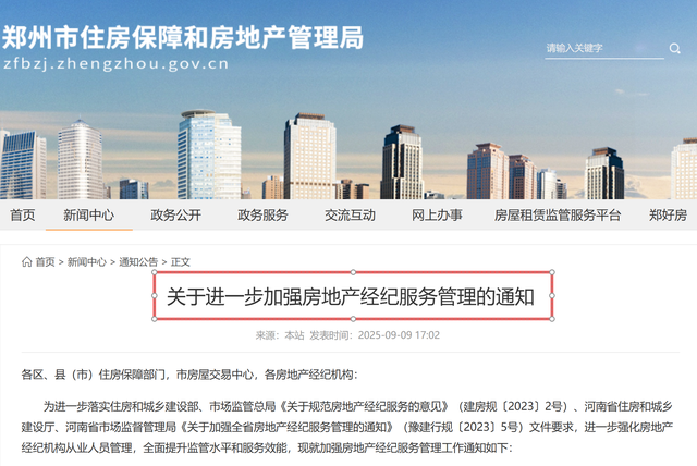 1.郑州市住房保障和房地产管理局-关于进一步加强房地产经纪服务管理的通知;