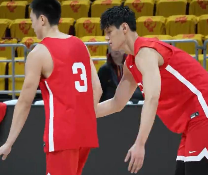 在之前男篮公开训练的时候,当时胡明轩和曾凡博就是被大家提到的一个话题。因为他们两个一起比拼三分,而且整个过程基本上都在一起,这也证明了他们两个的感情非常好。来到今天踩场训练,他们两个又黏在一起了。