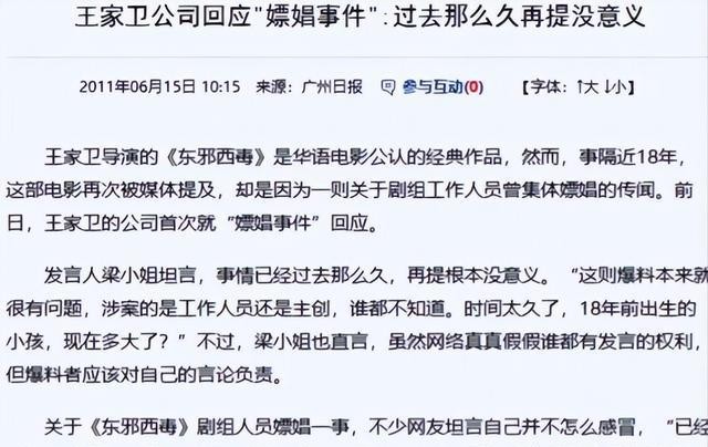 旧事也被翻出来。1993年《东邪西毒》在陕西榆林拍摄时,剧组曝出集体嫖娼案。警方行动,抓了30多人,其中16个是嫖客,基本都是灯光师和场工,还有暗娼和皮条客。公司后来把大家都说成临时工,没人细究,王家卫本人没涉及,但作为负责人的管理责任一点没少。