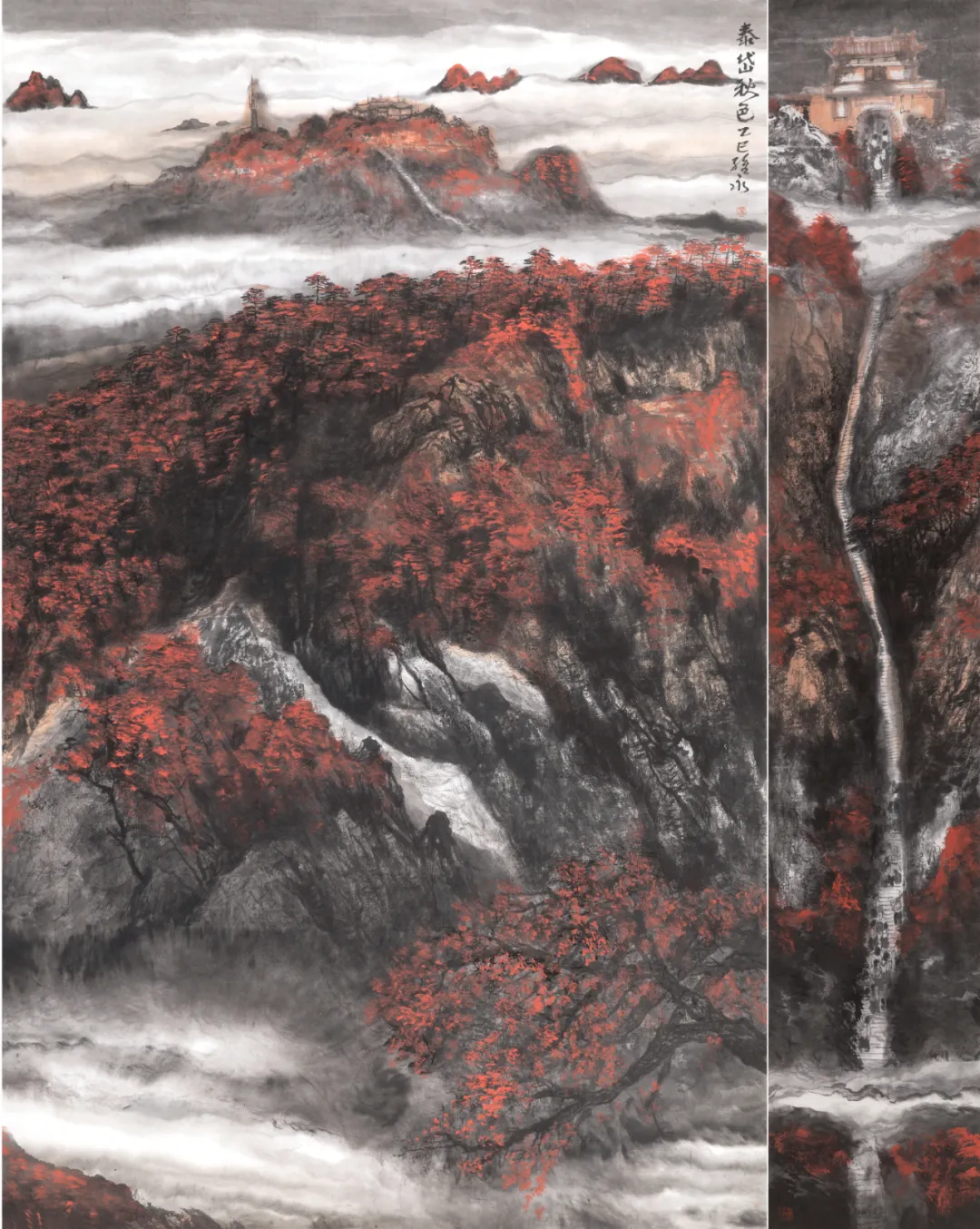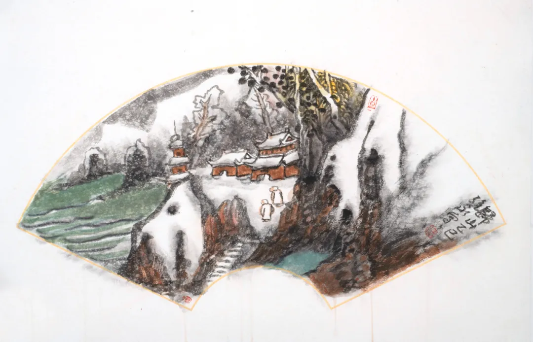 展览中同时呈现的西岳华山系列,如《西岳风骨中华魂》,以险峻笔意拓展了山水美学的外延;雪景小品则通过空灵墨韵展现文人画的诗意传统。这些作品与《望岳》巨制共同构成多声部的艺术交响,既彰显了艺术家深耕传统的功力,更见证其在当代语境下的创新活力。