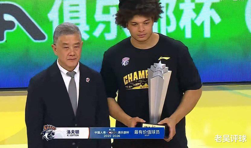 洛夫顿荣膺第二届CBA俱乐部杯最有价值球员。他在打了23分钟的情况下,高效砍下25分8篮板5助攻1抢断,三分球3投2中,三分球命中率67%,他一人就获得了20次罚球,杀伤力真的是太大了。洛夫顿获得MVP是实至名归,他值得这个荣誉。