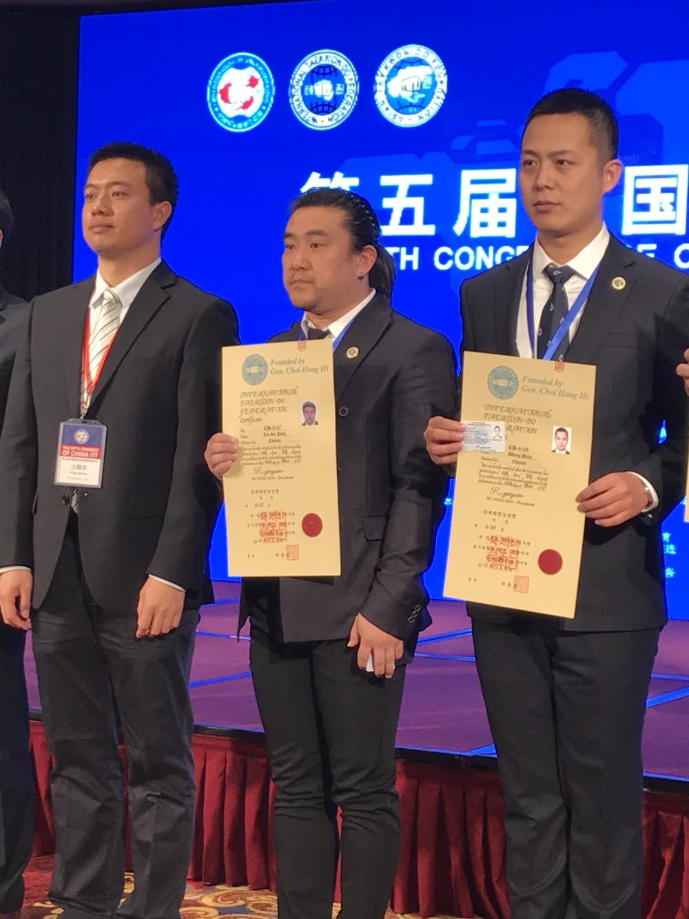 在本次大会中,国际跆拳联盟中国官员为蔺苏鹏师范颁发六段证书,蔺师范成为沧州跆拳道最高段位师范。