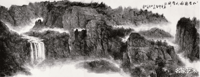 山势巍峨水云妍中国画141cmx364cm刘人岛