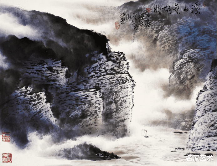 刘老师的作品中融合了傅抱石等一些大师们的各种皴法、笔法于一体,形成了他独特的个人艺术魅力,不管是他的雕塑,还是山水画、花鸟画及漆画都如此。刘老师的艺术起源于陶瓷美术,所以他的画既有张力又能把控全局,还能收放自如,给观者带来的是绝美的精神享受。