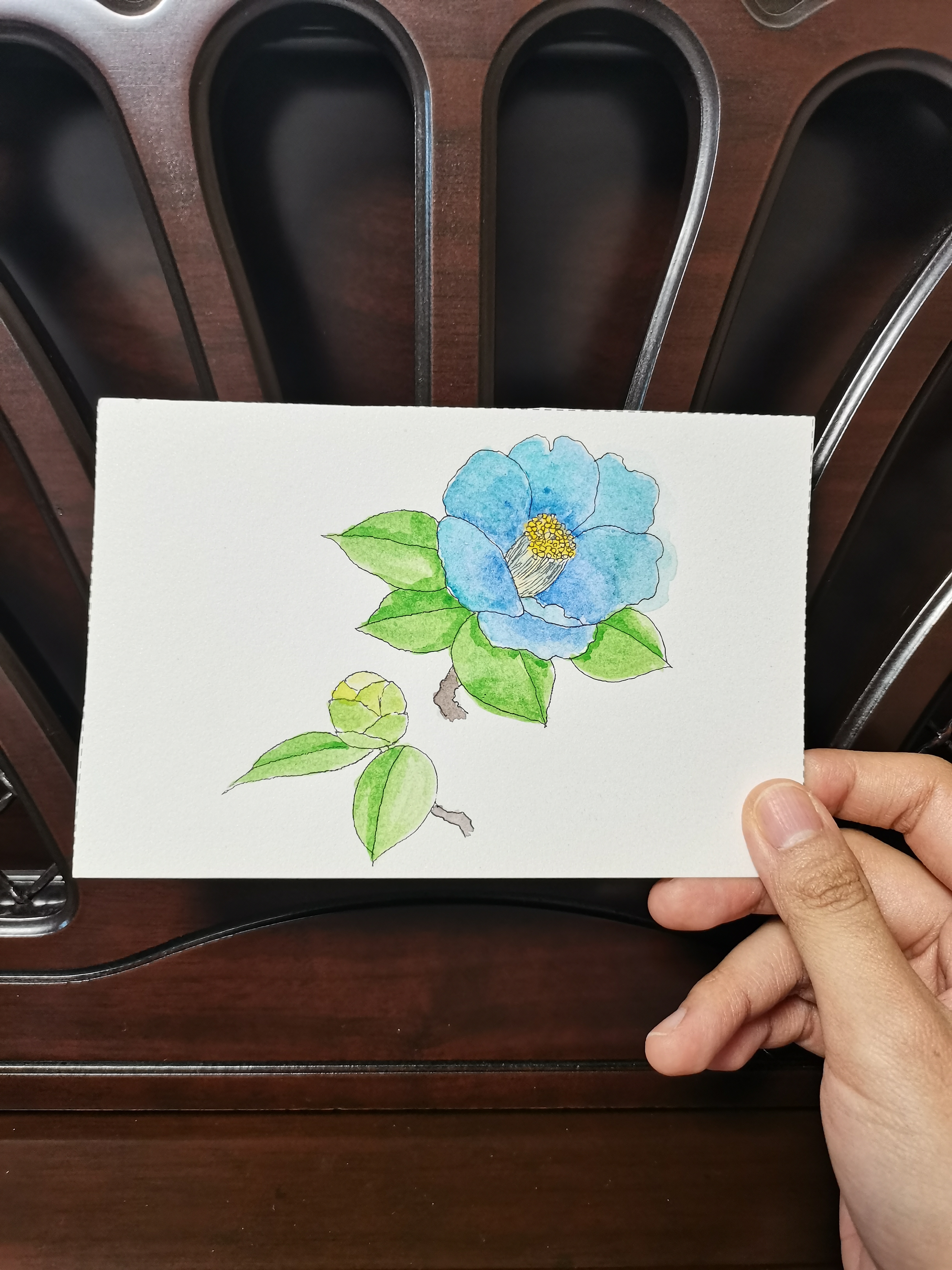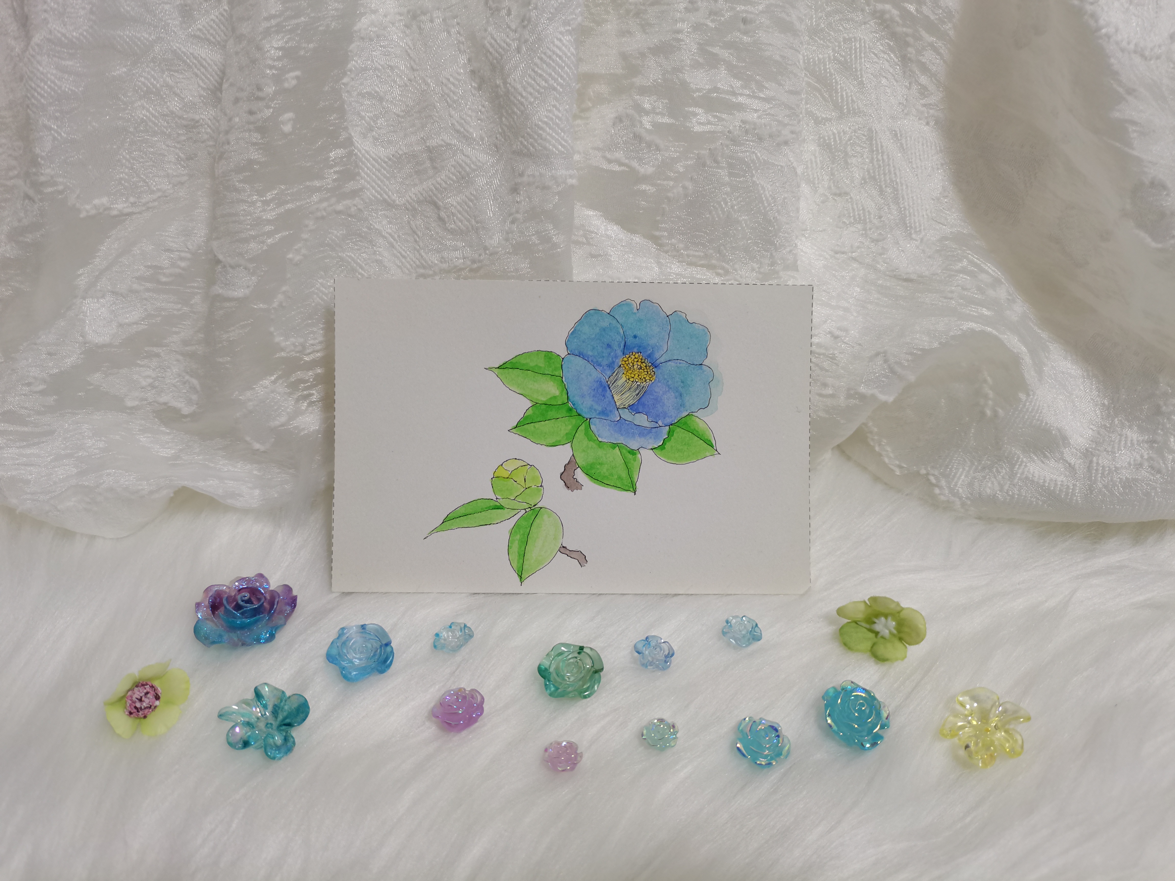 用天青蓝和水蓝,染一朵蓝色山茶。