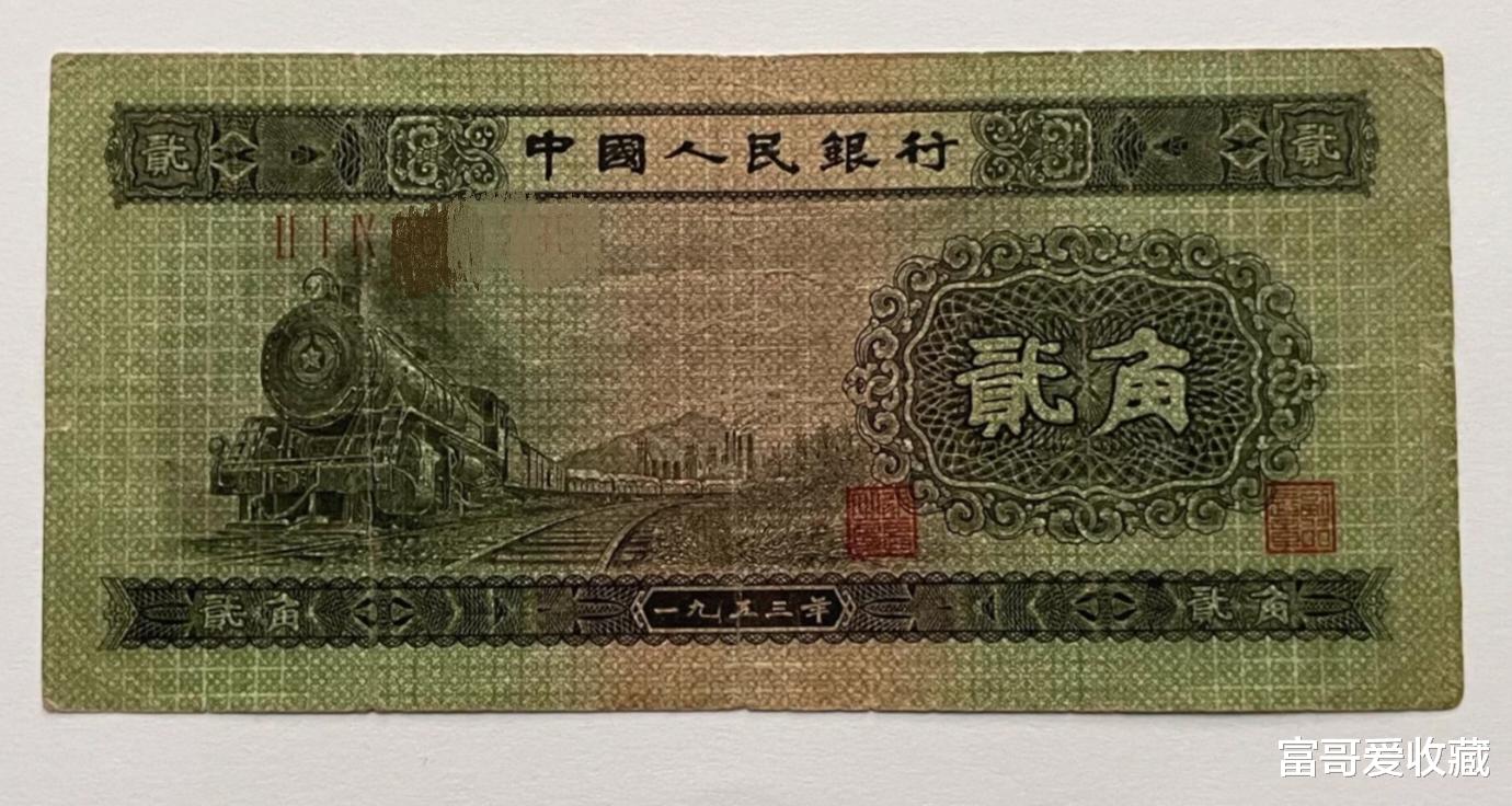 这种1953年的“2角纸币”,俗称:“火车头2角”。主要因为纸币正面的“火车图案”而得名!