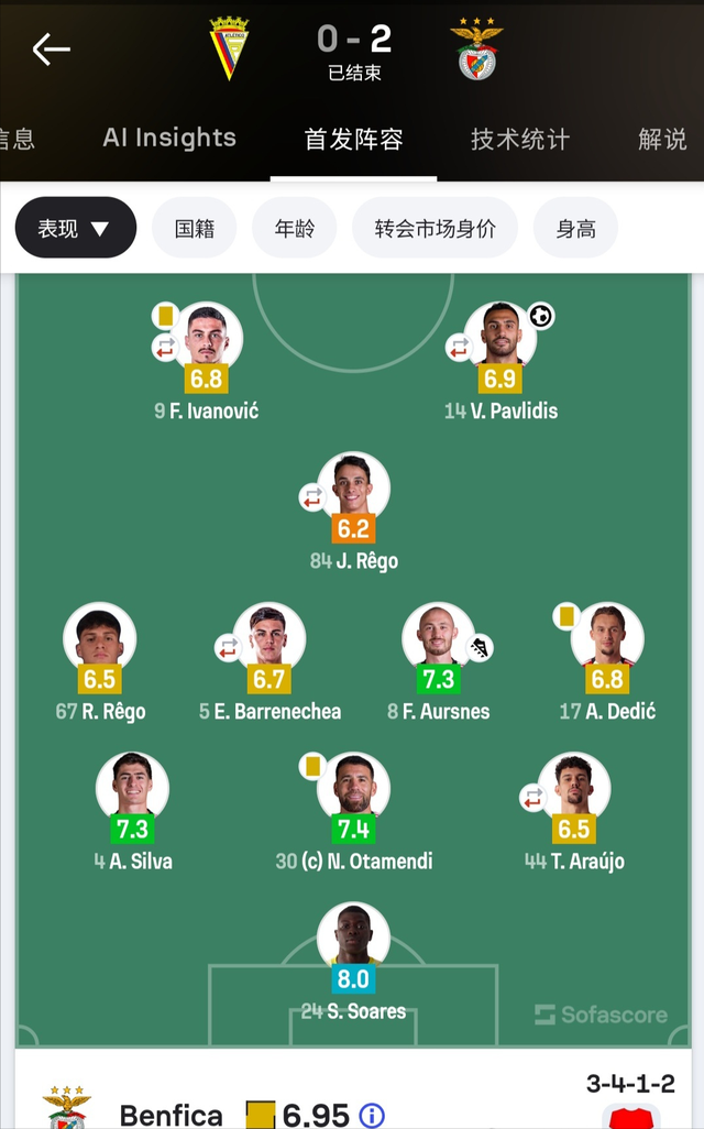 年轻人罗德里戈·雷戈(Rodrigo Rêgo)一线队首秀,被球迷票选为全场最佳球员,这是肯定,也是鞭策。上半场在三中卫阵型打左翼卫,下半场在433阵型打右边锋,这位本土青训让球迷津津乐道,毕竟穆帅上任之前,本菲卡首发11人中,只有1名葡萄牙球员,确实有些尴尬。