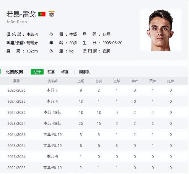 身披84号球衣的若昂-雷戈,叫大雷,上赛季就进入一线队,获得13次出场,1次首发和1个进球,而这个赛季,已经获得了9次出场,2次首发和1个进球。
