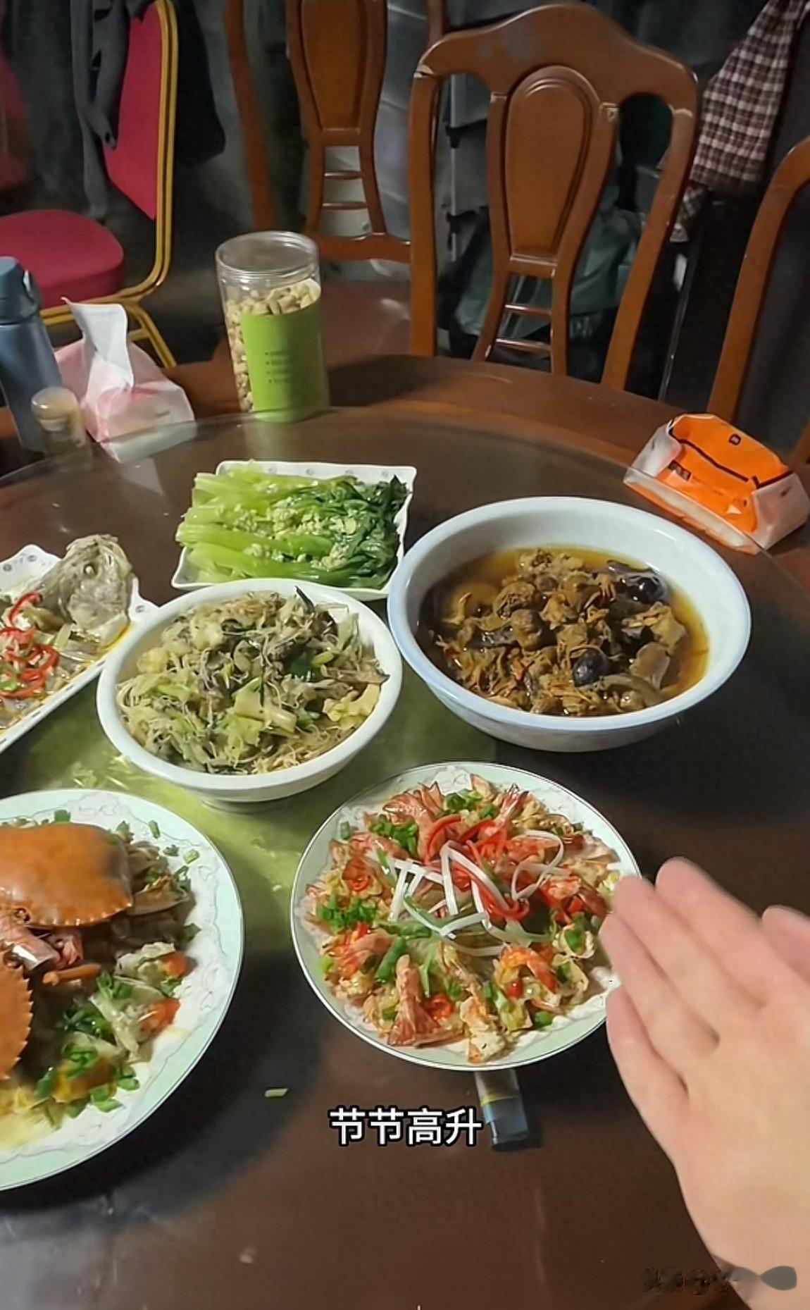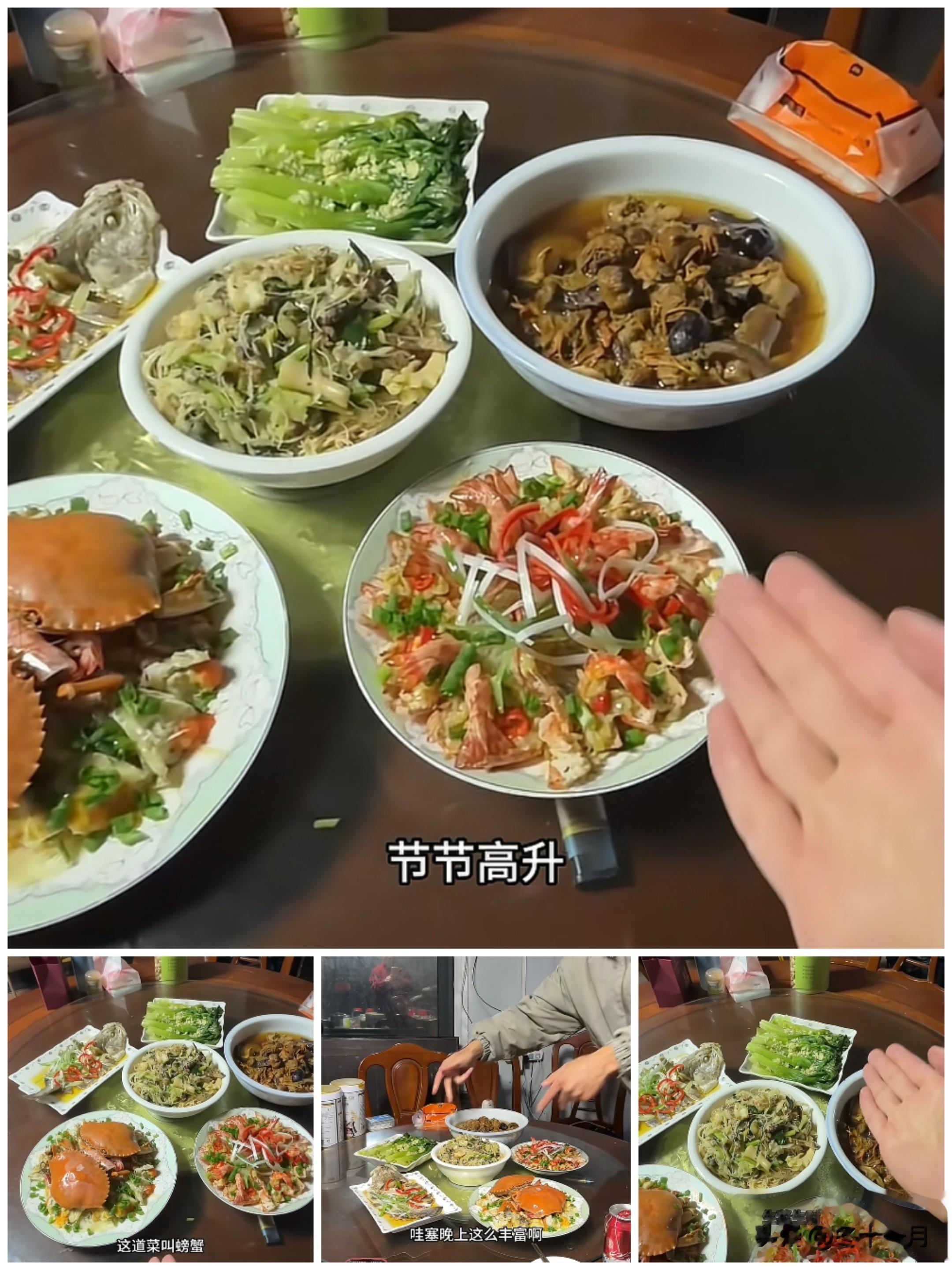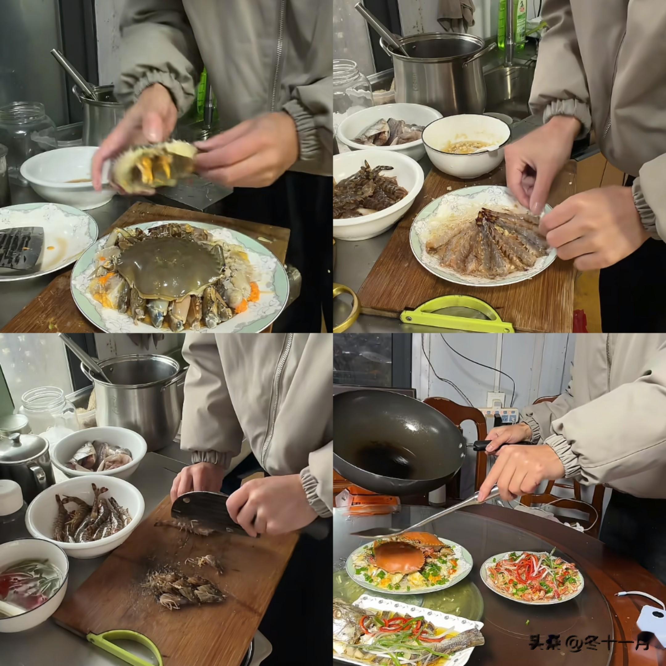 在除夕当天,他又采买妈妈平时舍不得吃的各种海鲜,为妈妈做了六个大菜。