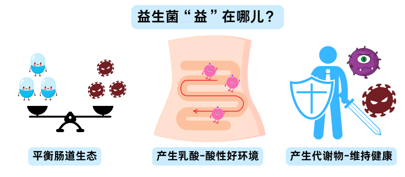 帮你消化食物,制造维生素,修补肠子这道防护墙,给免疫系统帮忙, 还能压制那些捣乱的坏菌。