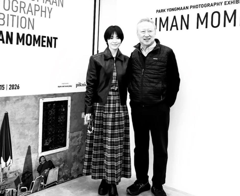 在这一次观展中,宋慧乔与出展作品的艺术家一起欣赏作品,两人也一起合照留念。