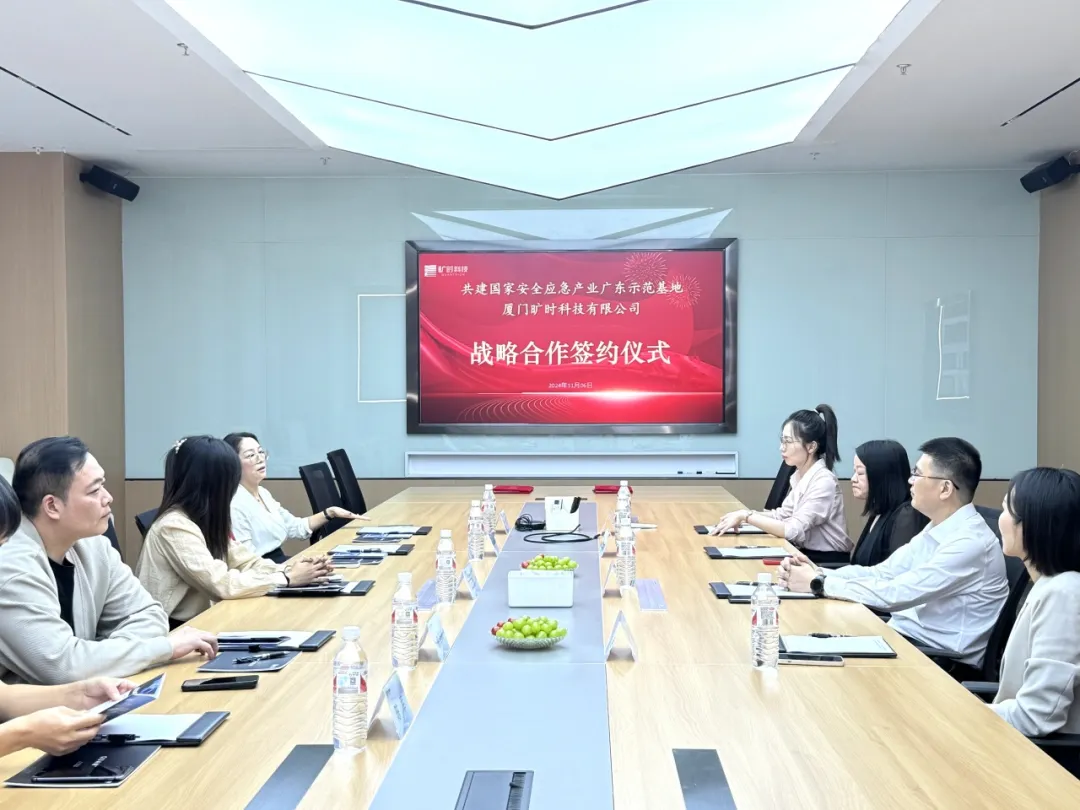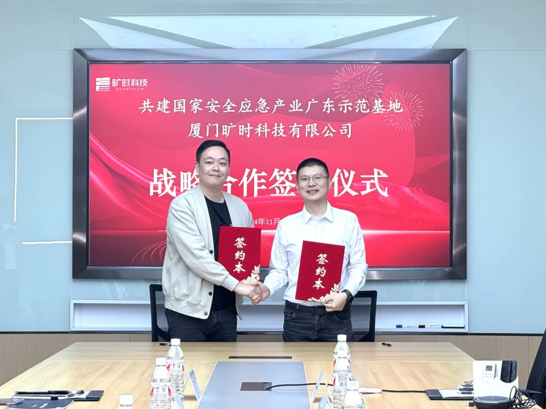 2024年11月6日下午,厦门旷时科技有限公司与共建国家安全应急产业广东示范基地正式签署战略合作协议,共同携手发展智慧健康、安全应急等产业。