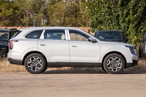 而且中网的镀铬装饰条不多不少,没有那种花里胡哨的设计,看着就挺理性的,符合咱们家庭用户的审美。大灯用的是矩阵式 LED 光源,日间行车灯是锐角的形状,点亮之后科技感十足,晚上开车也安全。前包围两侧的导风槽,不光好看,还能起到引导空气的作用,同时也让 SUV 那种有力量的感觉更突出了。下面的银色护板,又增加了整车的厚重感,让前脸既有家用的温馨劲儿,又带着点运动气息,挺均衡的。