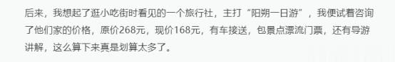 实习生晓晨的经历就是个例子,早前在2023年,她就分享了自己穷游的故事,花168块钱报了个桂林阳朔一日游,导游在车上唾沫横飞地推销各种特产。