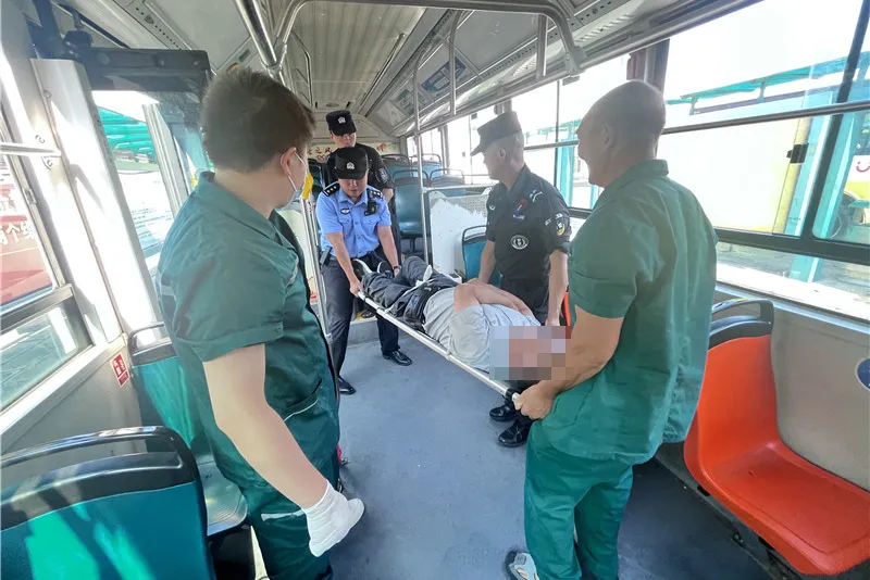当日上午9时35分许,特巡警大队队员正在高铁站周边开展日常巡逻工作,此时忽然听到有人在大声呼救,闻声望去,是从不远处的一辆公交车传来的求救声。