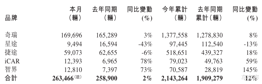 同时,根据奇瑞集团发布的公告,2025年10月份,奇瑞集团销售汽车281,161辆,同比增长3.3%,其中,新能源汽车销售110,346辆,同比增长54.7%,首次单月新能源超11万辆;出口126,434辆,同比增长13%。其中,奇瑞汽车股份有限公司(9973.HK)10月份销售汽车263,466辆,同比增长2%。1-10月,奇瑞集团累计销售汽车2,288,929辆,同比增长13%,创历史同期最佳业绩。此前,奇瑞董事长尹同跃宣布,2025年销量目标330万辆,营收剑指6000亿元,下半年需完成200万辆销量。若能实现这一目标,奇瑞将首次跻身全球十大车企阵营。