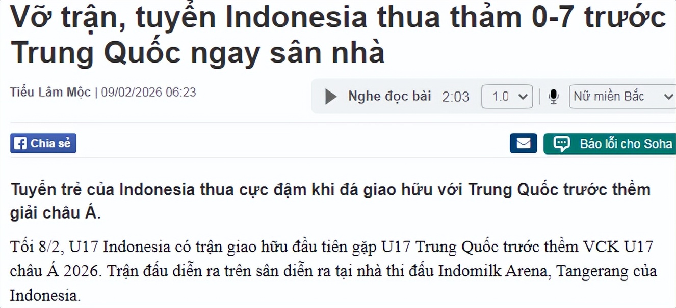 有意思的是,U17国少这次大胜也引起了越媒Soha的关注。该媒还发文进行了报道和点评(上图)。标题大意是:印尼队防线崩溃,主场以0比7惨败给中国队。点评印尼U17这场失利,越媒写道,尽管拥有主场优势,但印尼U17队表现却过于稚嫩,失误频频,最终以惨败告终,不敌中国队。