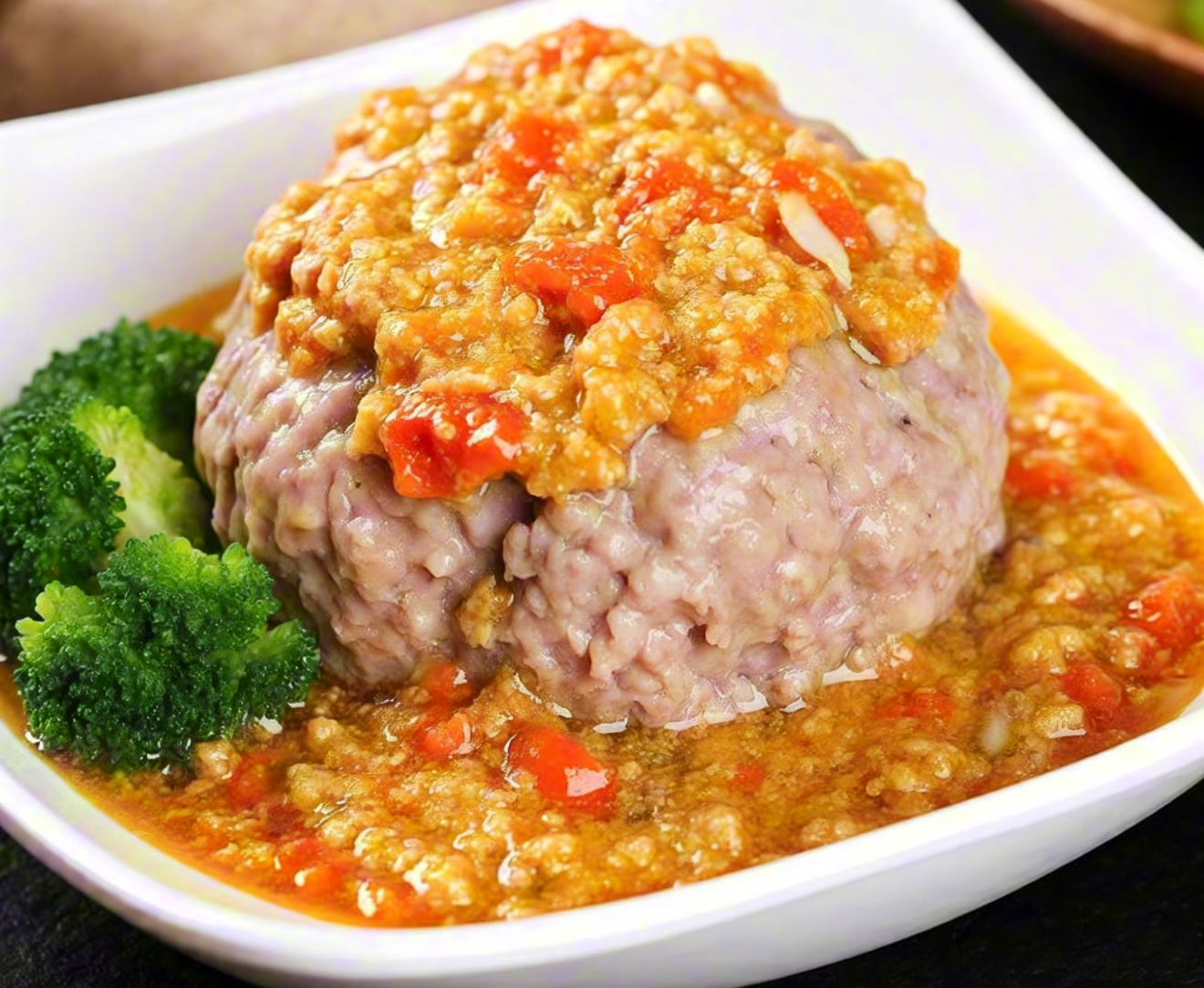 • 主角:猪肉糜300克(肥瘦比例3:7,口感更嫩!)、蟹肉碎100克(或蟹肉棒切碎)