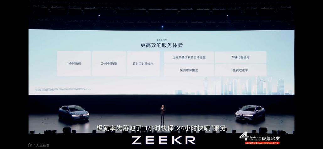 相比十多年前,如今的汽车市场正从产品为王的时代走向体验为王的时代,服务的核心也逐渐从“车”转向“人”,这要求车企在服务品质方面也要作出改善。关于这方面,极氪同样引领着整个行业。在售后服务层面,极氪为用户提供全系车型“三电不限里程终身质保”服务,行业唯一。全系车型6年15万公里整车质保,行业领先。新车4年或10万公里,服务范围可以覆盖中国960万平方公里的任何一条道路,高速拖车费用不限里程,全额报销。同时极氪在行业率先落地“1小时快保,24小时快喷服务”,对于那些工作忙碌的用户来说,能节省大量时间。