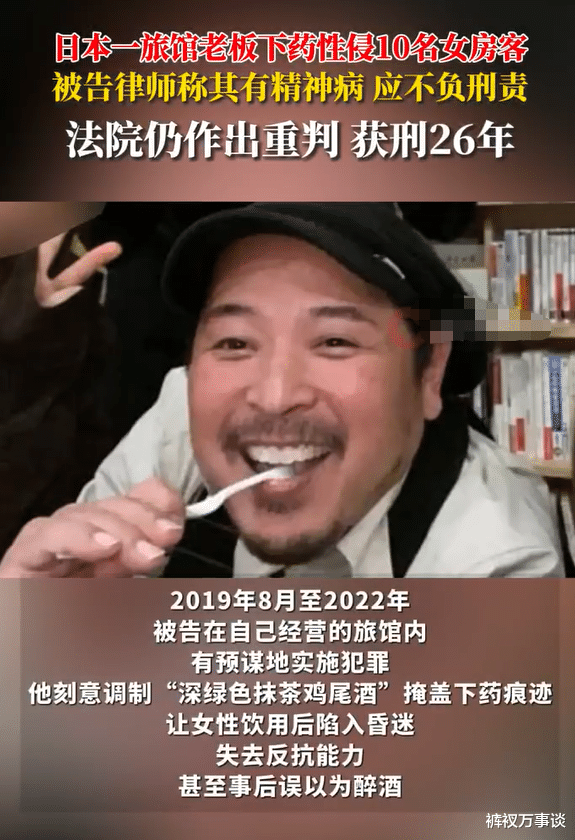 大家好,我是裤衩。有件事在我心里堵了好几天,不吐不快。就是日本那家青年旅馆老板,给女房客下药性侵的案子。三年,至少十位女性受害,最后判了26年。