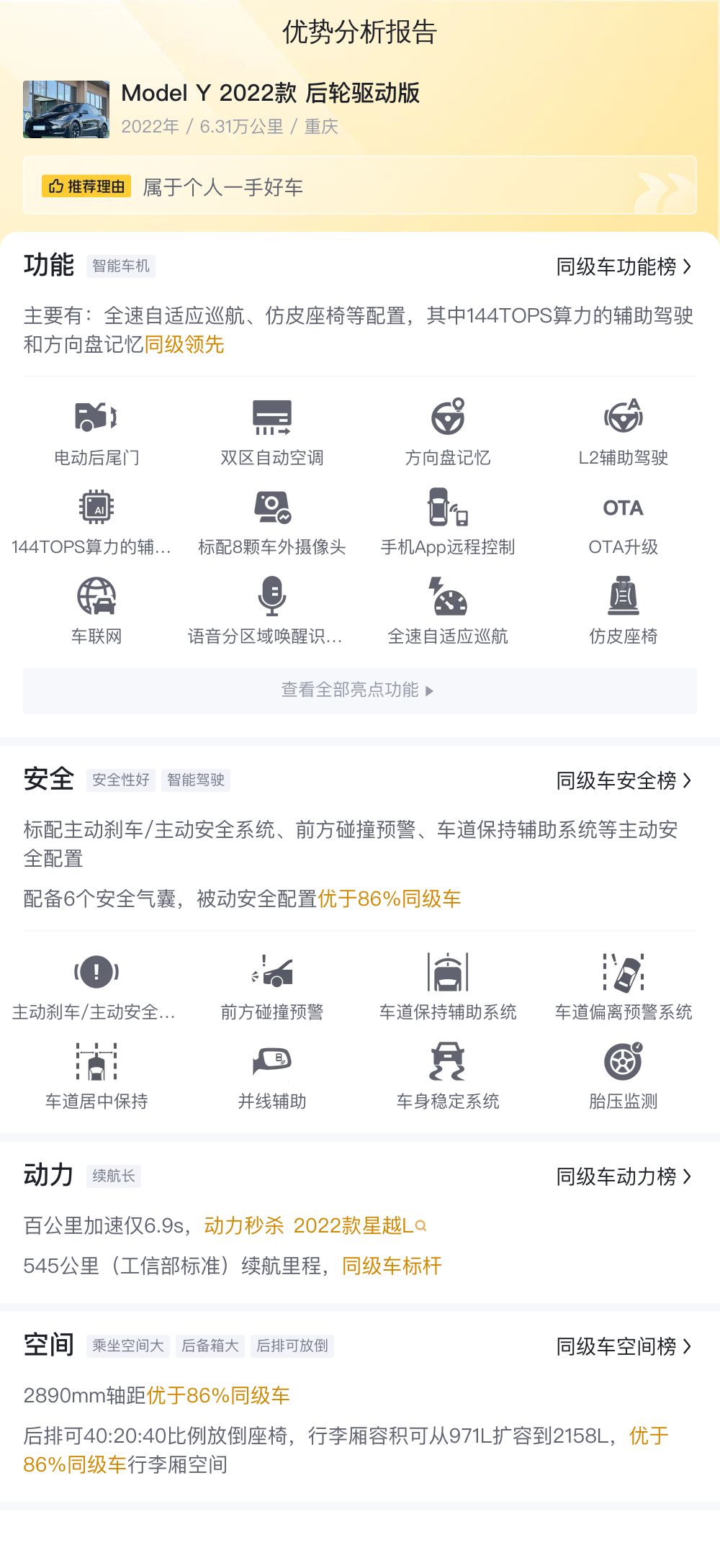 以上就是为您分享的Model Y 2022款后轮驱动版的部分情况,希望可以帮助到您。