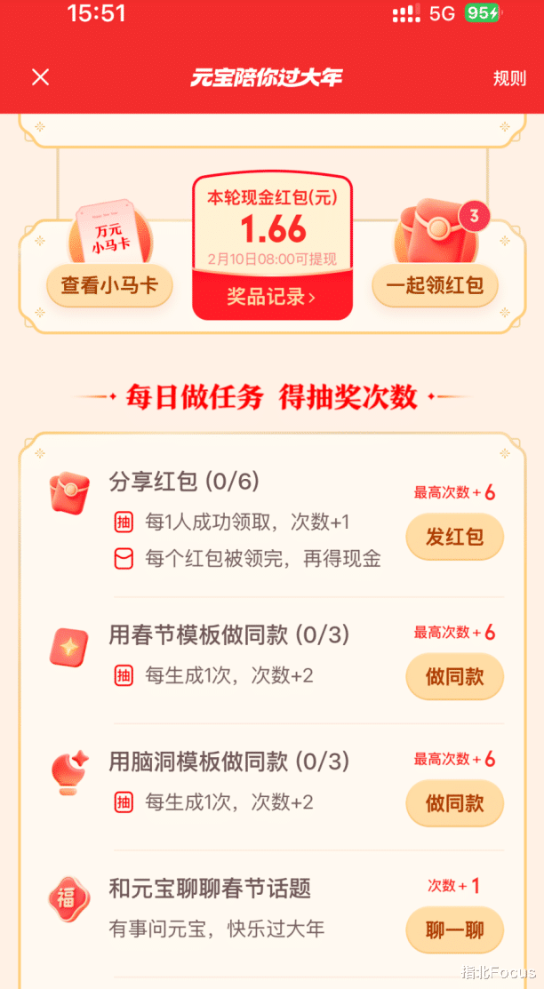 一到春节有几样东西就解冻,刘德华解冻唱《恭喜发财》,群发短信开始出击,人类往往都是有惯性思维,到了什么时候似乎就“该”做点什么。这几天,十多年前的红包大战,在这个堪称首个AI春节的2026年初,被大厂们再次解冻了。