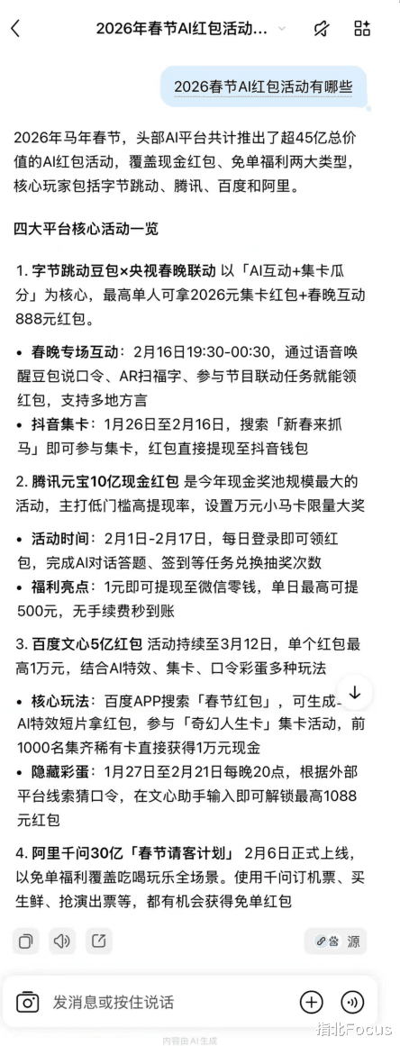 回头来说,春节AI红包这场大戏,看着锣鼓喧天,但这些AI红包催生的所谓“AI体验”,大多没摸到AI该有的样子。