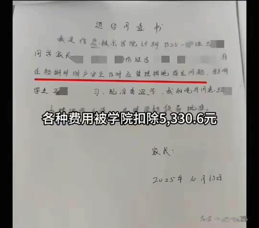 可令她没想到的是,即便退学还依然又恶心了自己一把。学校从他的学费里扣除了住宿费等各项费用,共计5000多元,临走又一次遭受经济损失。仅仅上4天课,痛失近10000元。