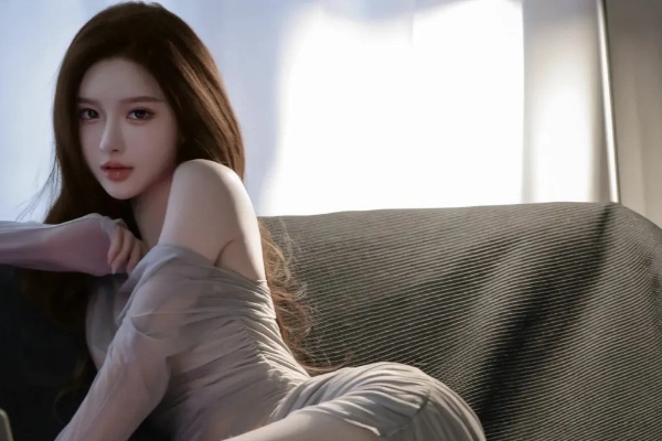 身上只有一条珍珠白色的吊带丝绸低胸睡衣,丝绸柔顺地贴合在她的身上。